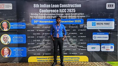 Congratulations to Jobins Devasia on presenting his paper titled “Towards Leaner Rail Infrastructure: A Theoretical Framework Combining Value Stream Mapping and Last Planner” at ILCC 2025, held at IIT Tirupati in December 2025.